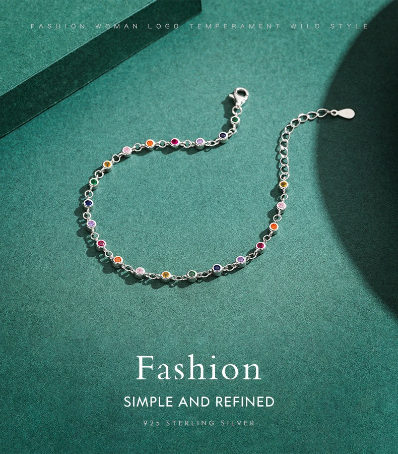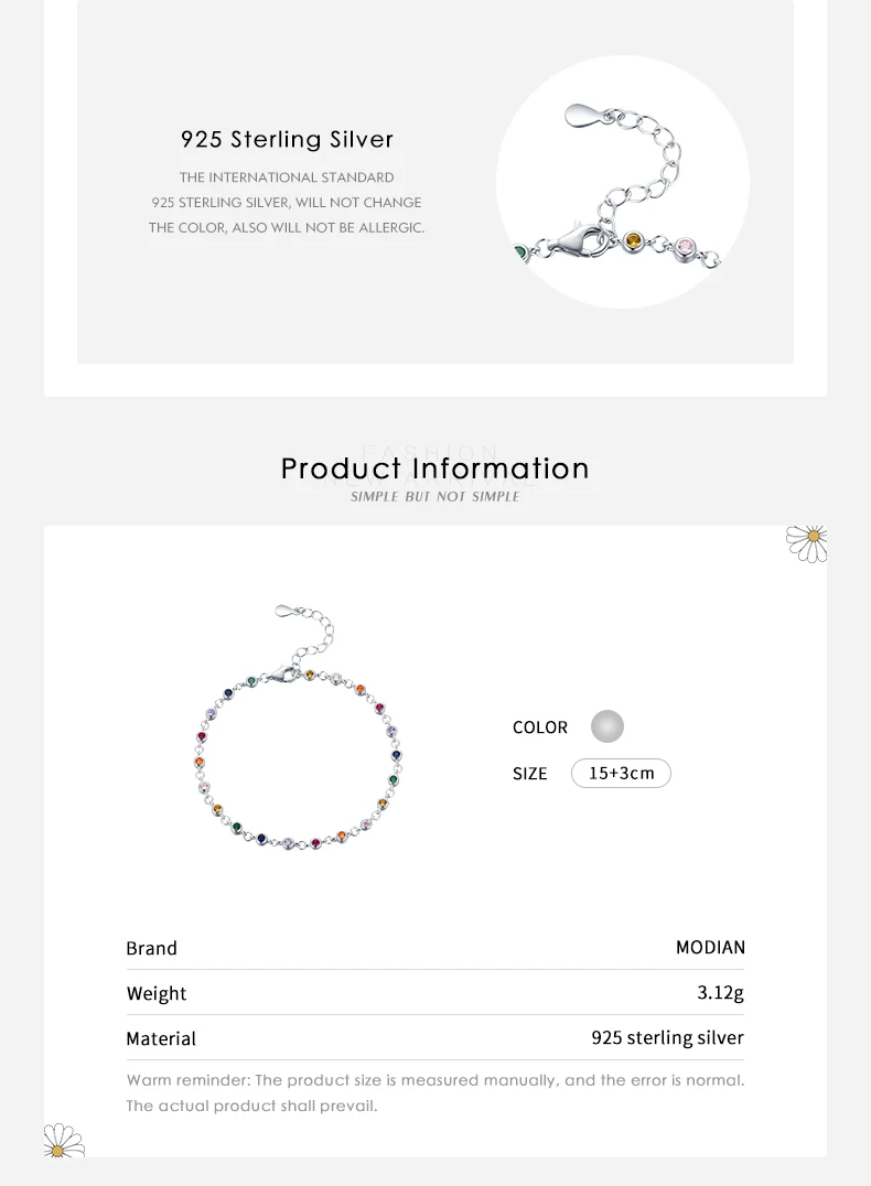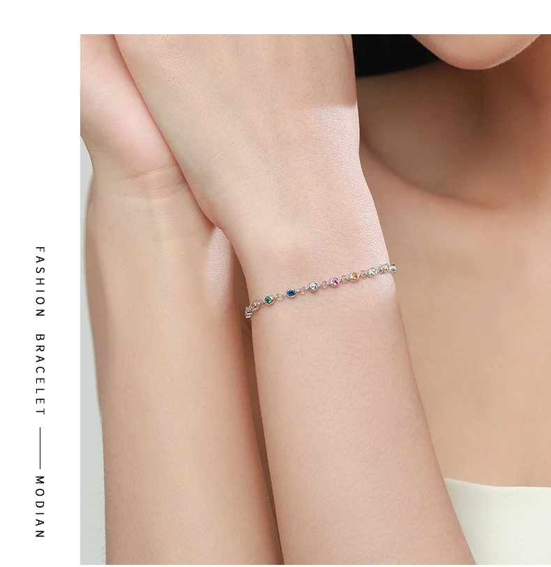 Цепочка MODIAN в богемном стиле для женщин, браслет из настоящего серебра 925 пробы с радужным кубическим цирконием, женская бижутерия, аксессуары