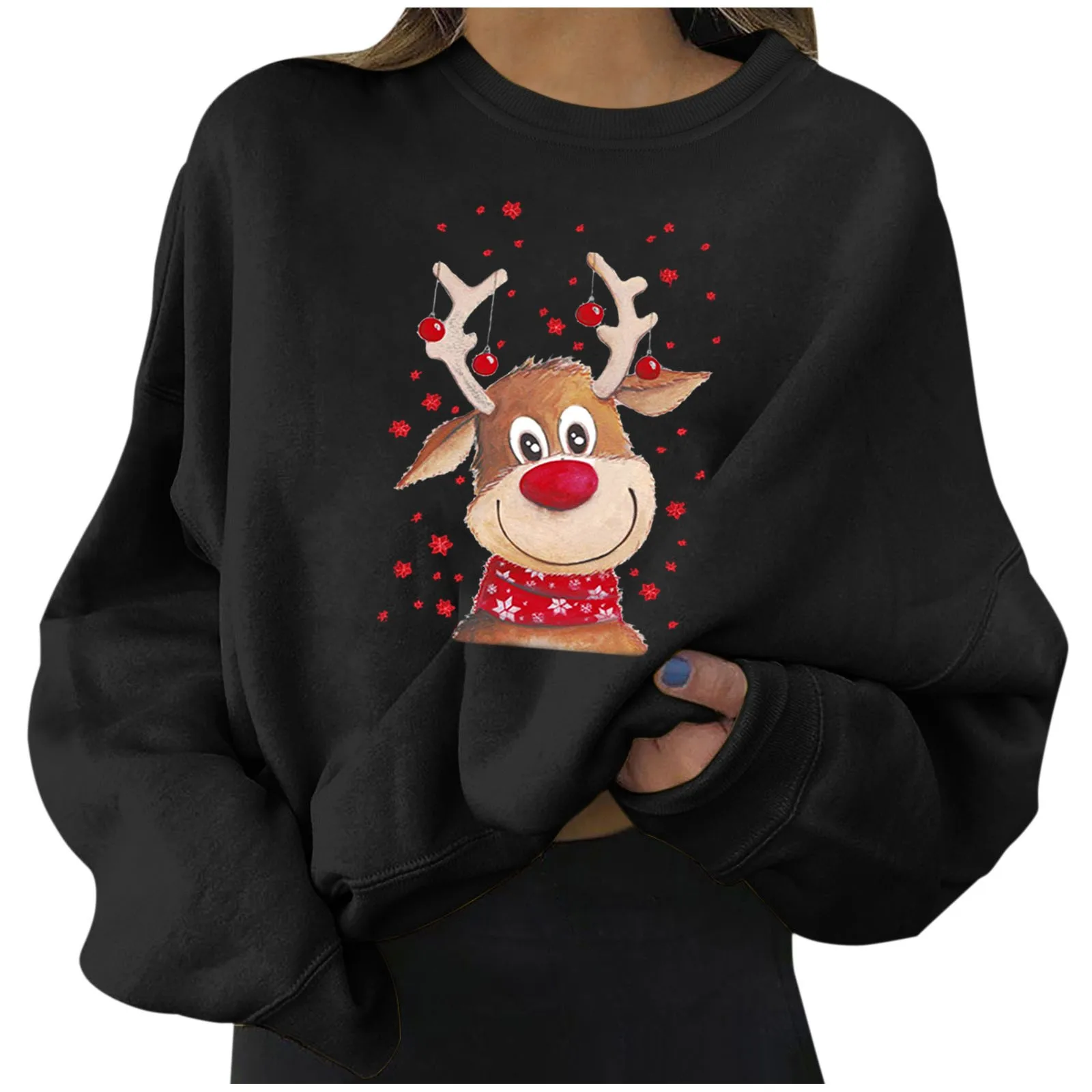 Женская рождественская Толстовка с принтом, туника с длинным рукавом, пуловер, блузка