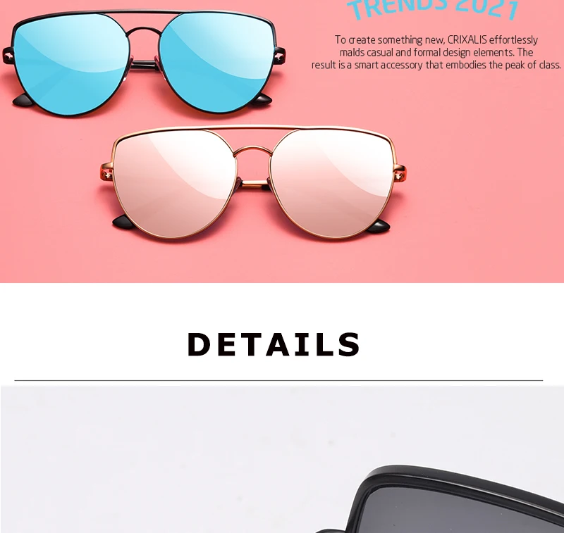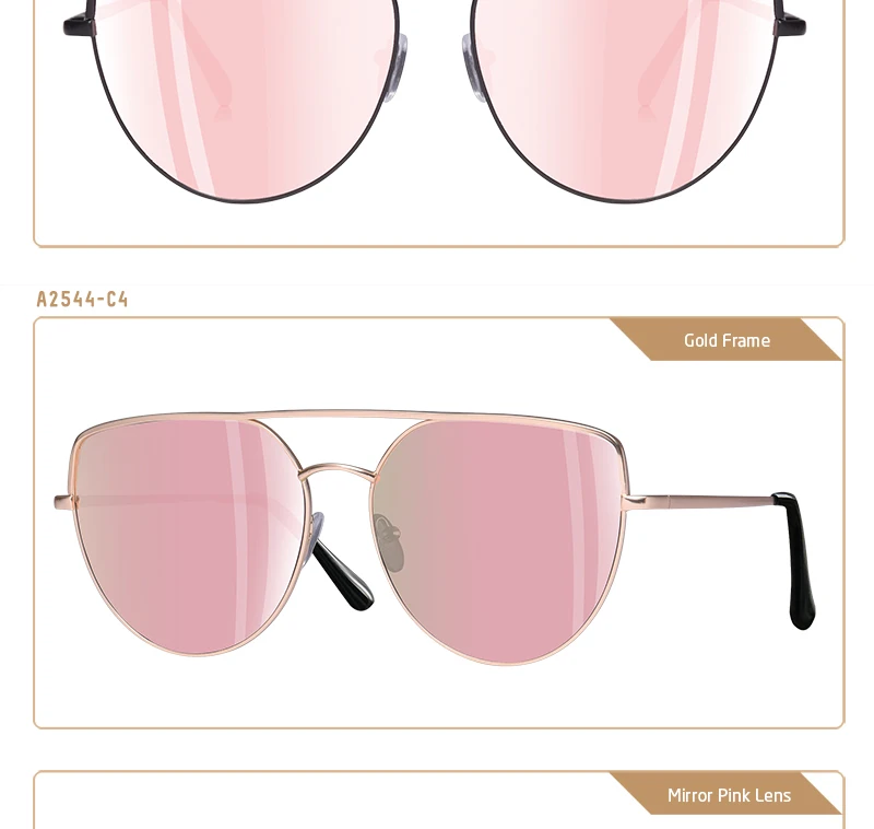 Солнцезащитные очки женские crxalis Pilot, металлические, розовые, зеркальные, UV400