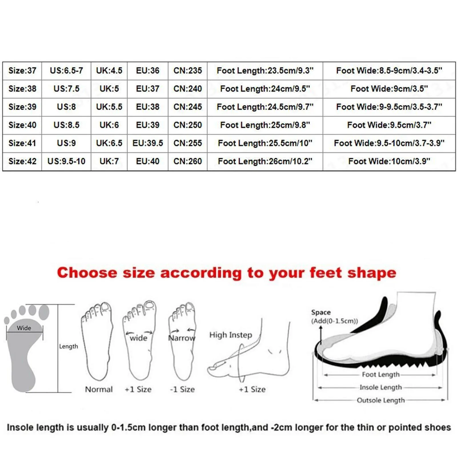 Теплое напоминание:Различные стили обуви, пожалуйста, выберите размер в соответствии с типом вашей стопы
