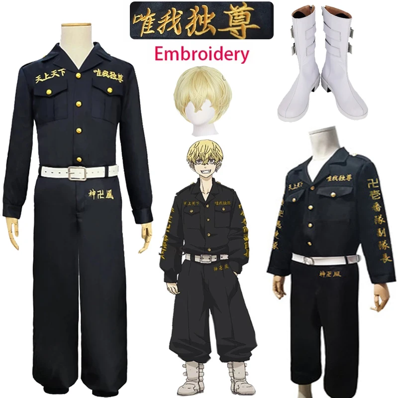 Костюм для косплея аниме Токио Мстители CHIFUYU MATSUNO, черная рубашка, штаны, парик, обувь для взрослых, Хэллоуин, Униформа с вышивкой