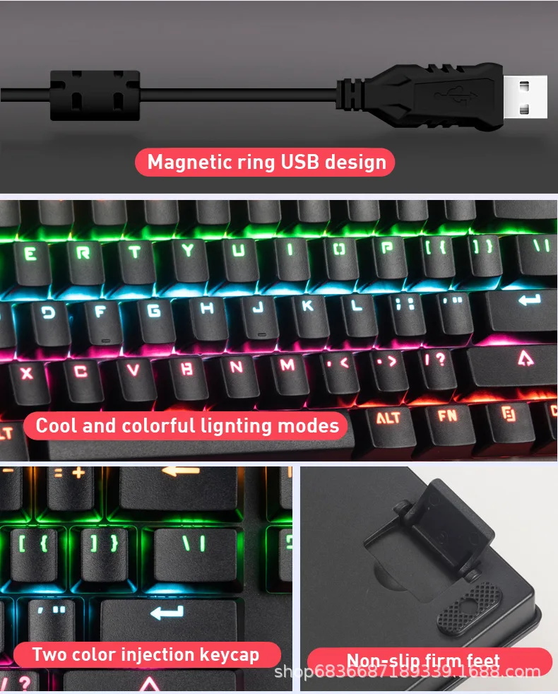 Механическая игровая клавиатура 87 клавиш, защита от фиктивных нажатий, RGB подсветка, ноутбук