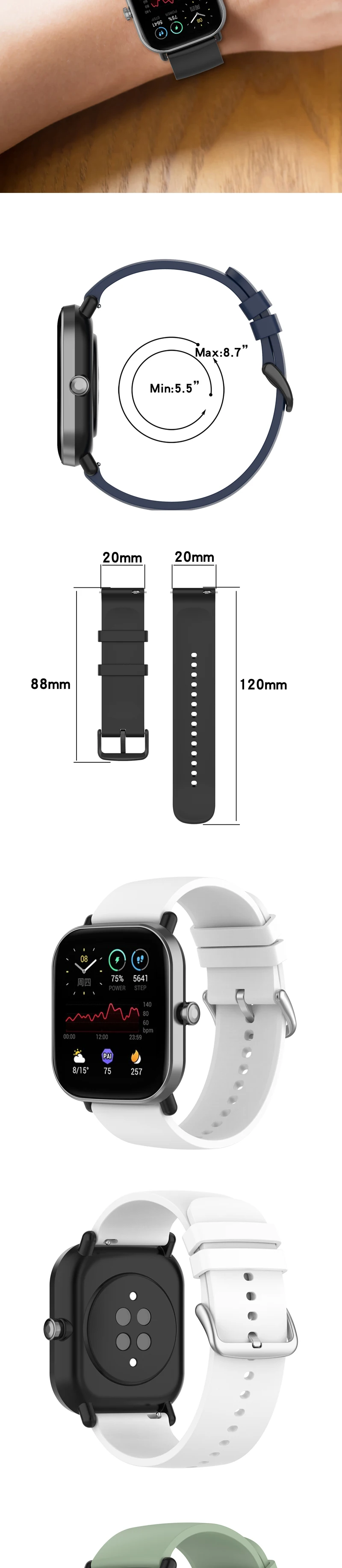 Сменный ремешок 20 мм для Amazfit GTS 2 Mini, силиконовый ремешок д...