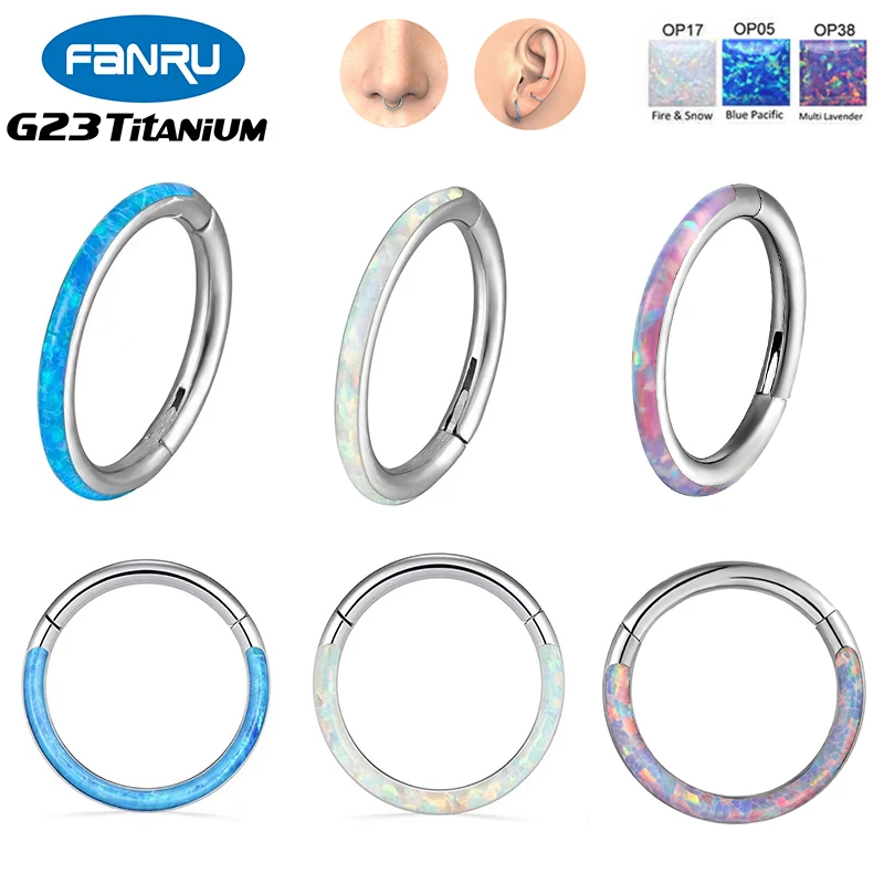 G23 титановые серьги для пирсинга, кольцо с опалом на петлях, кольцо для носа, открытые маленькие носовые перегородки, хрящи для тела, перфорированные ювелирные изделия