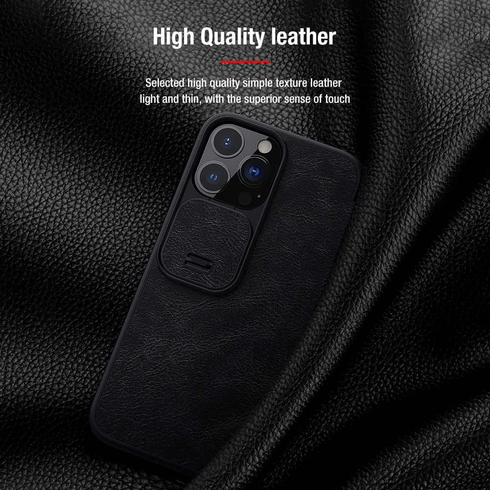NILLKIN для iPhone 13 Pro Max с скользящей крышкой Защита камеры Флип кожаный чехол для Apple iPhone 13 Pro 5G (2021) чехол