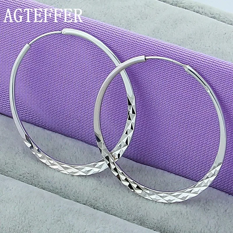 Новинка 2021 от AGTEFFER, круглые серьги-кольца 50 мм из стерлингового серебра 925 пробы для женщин, ювелирные изделия для свадьбы, помолвки, вечеринки, подарок