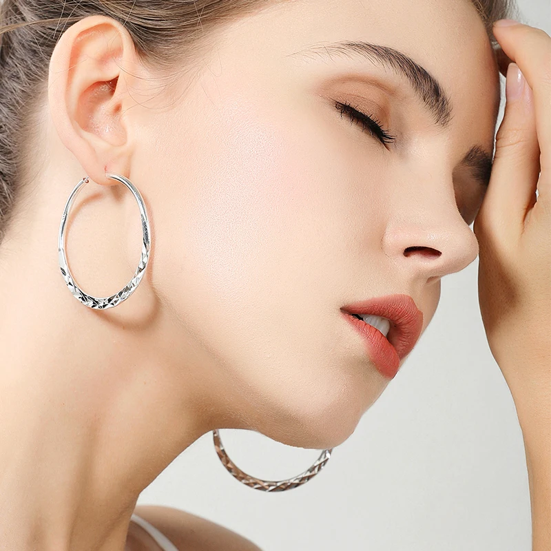 925 серебряные модные 50 мм большие серьги-кольца для женщин Свадеб...