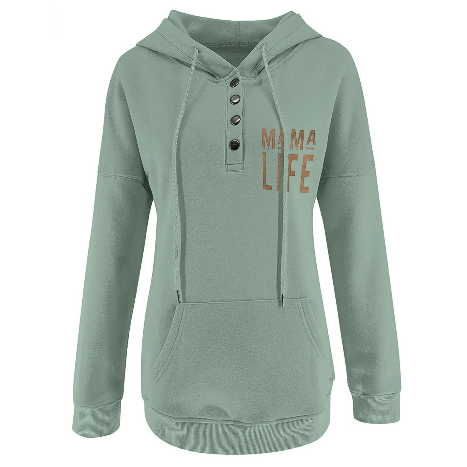 Толстовки с капюшоном на завязках, пуловер с буквенным принтом на пуговицах, женские повседневные толстовки с карманами и длинными рукавами, плотный Свитшот 40 #