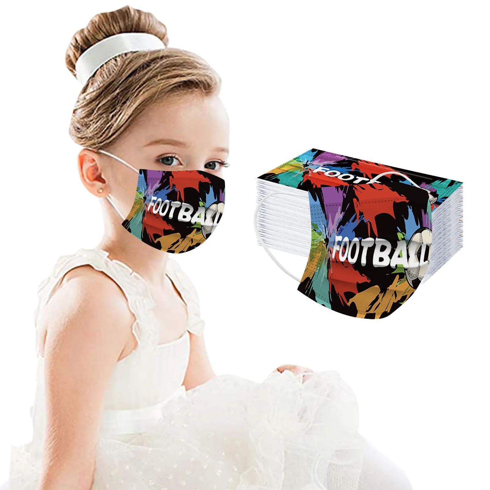 50 шт., одноразовые детские маски для лица, 3 слоя