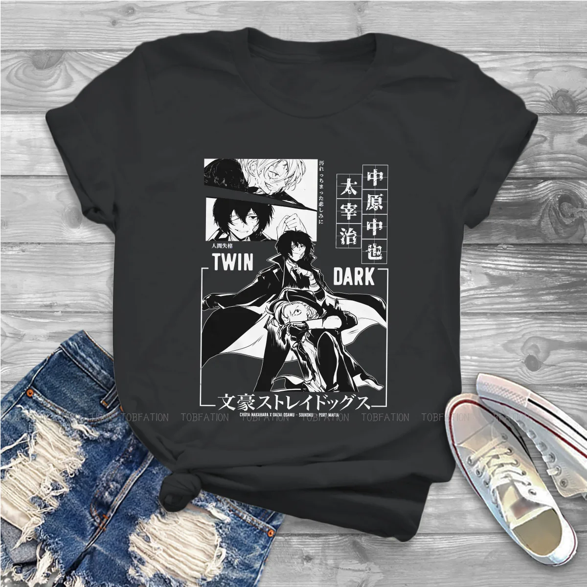 Футболка Bungou для женщин с изображением бродячих собак и манги, женские топы Soukoku Chuyaa и Dazai, кавайные футболки в стиле Харадзюку, Женская хлопковая футболка