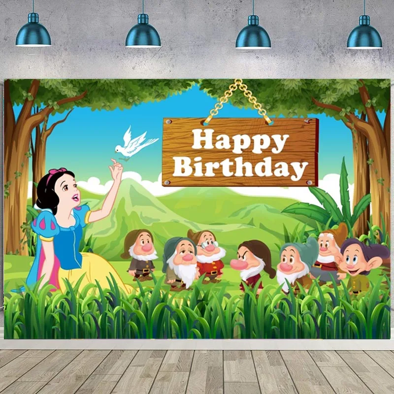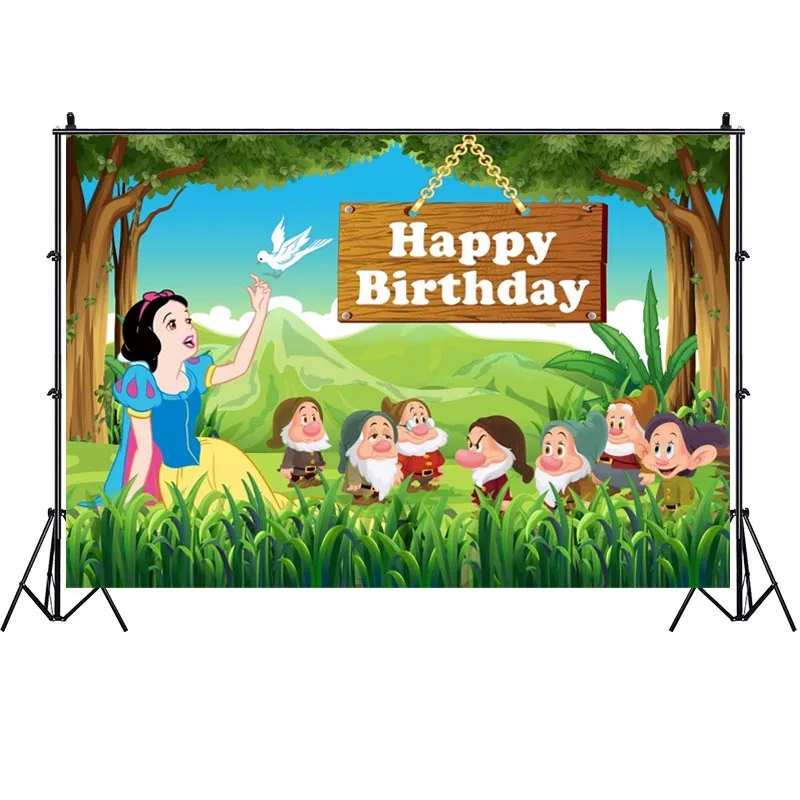 Фон принцессы Белоснежка и семь гномов Детский День Рождения фотография фон для фотостудии баннер