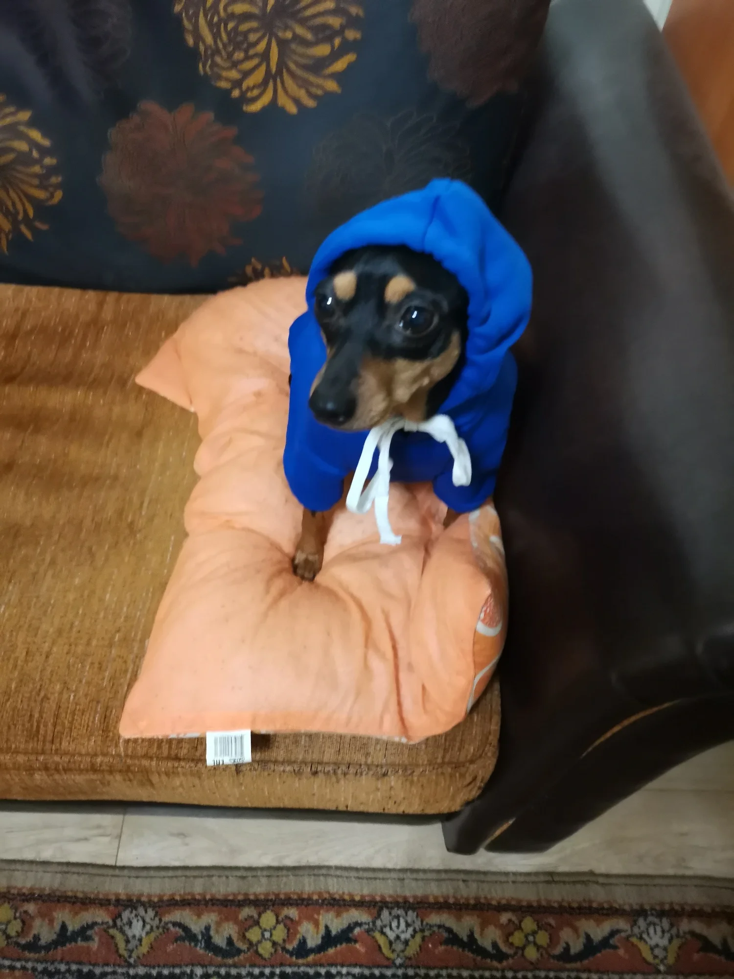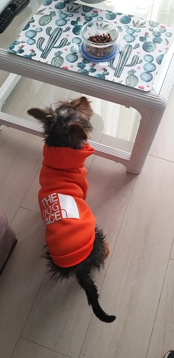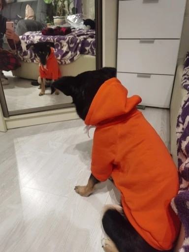 Отличная толстовка. Размер только велик.Брала М- для чихуахуа.Заказала две размером меньше, ждем с ☺️