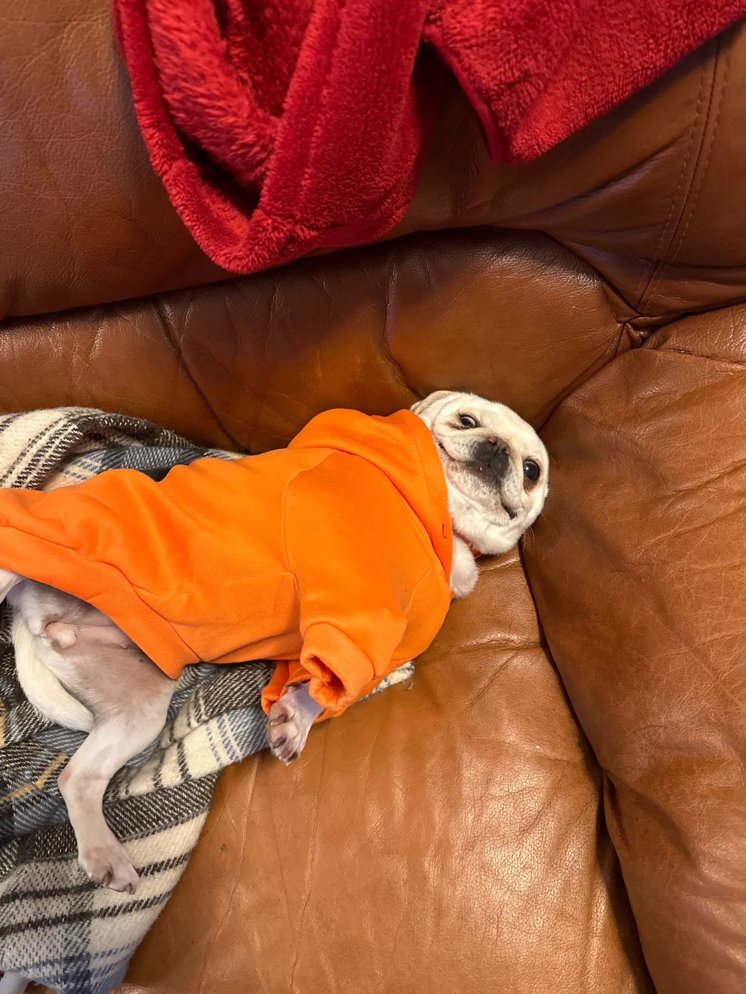 Очень красиво! Но размер не очень хороший, наконец, все зависит от собаки, но xl на фото подходит для французского бульдога, который является сильной собакой, у меня есть стул, который тоньше, но немного больше и очень трудно затянуть в почтовый ящик! Но в остальном слишком мило и прибыл быстро! Наша собака счастлива со своим свитером