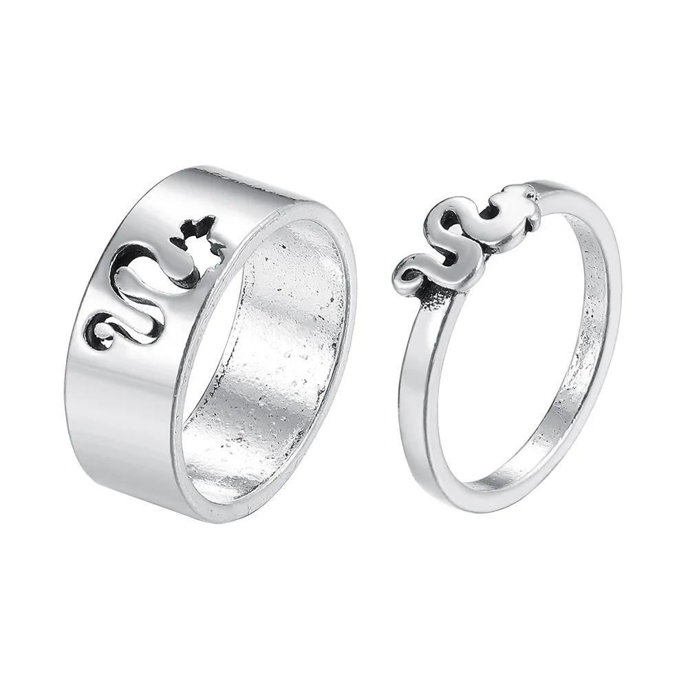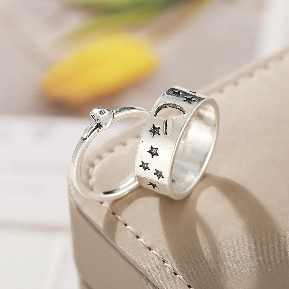 Винтаж полые гриб инкрустированные Кольца в комплекте, с рисунком пентаграммы резной, в виде звезды полосы для пальца Панк Серебряный Цвет кольца для пар в стиле унисекс, ювелирное изделие, подарок