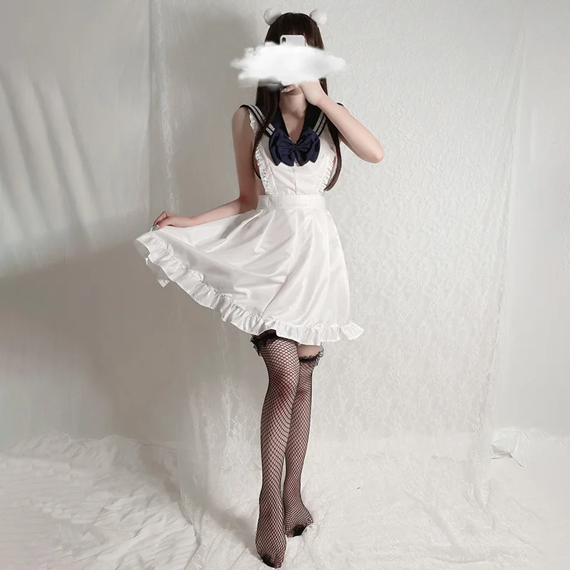 Эротические костюмы белой горничной для косплея, кружевное аниме се...