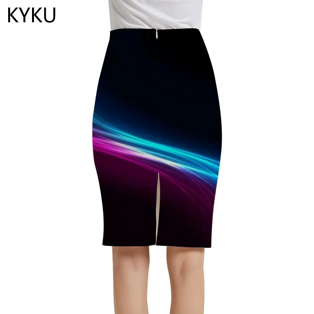 Женская юбка-карандаш KYKU, темно-синяя юбка с принтом туманности, ...