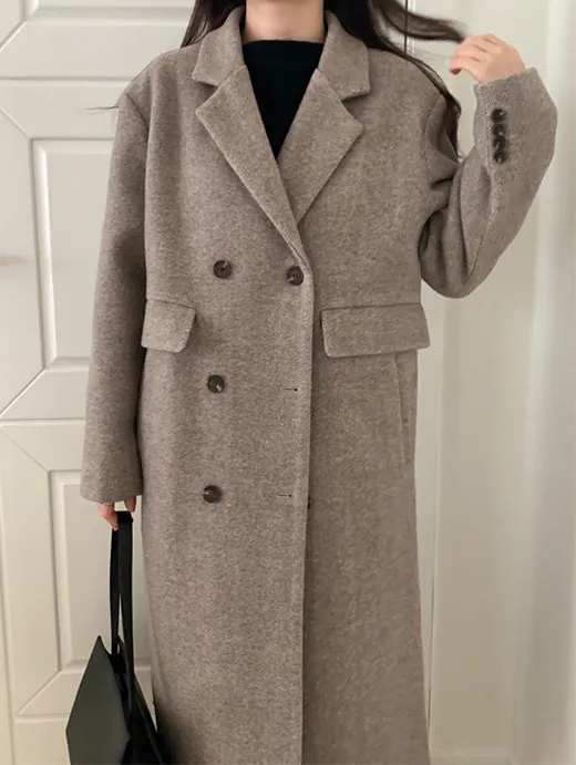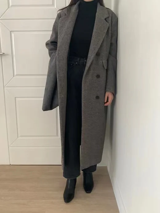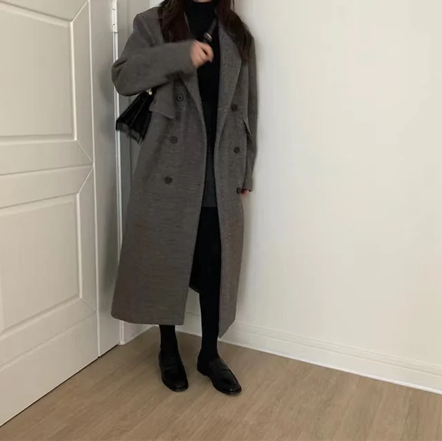 Женское двубортное пальто, длинное кашемировое пальто из смесовой ш...