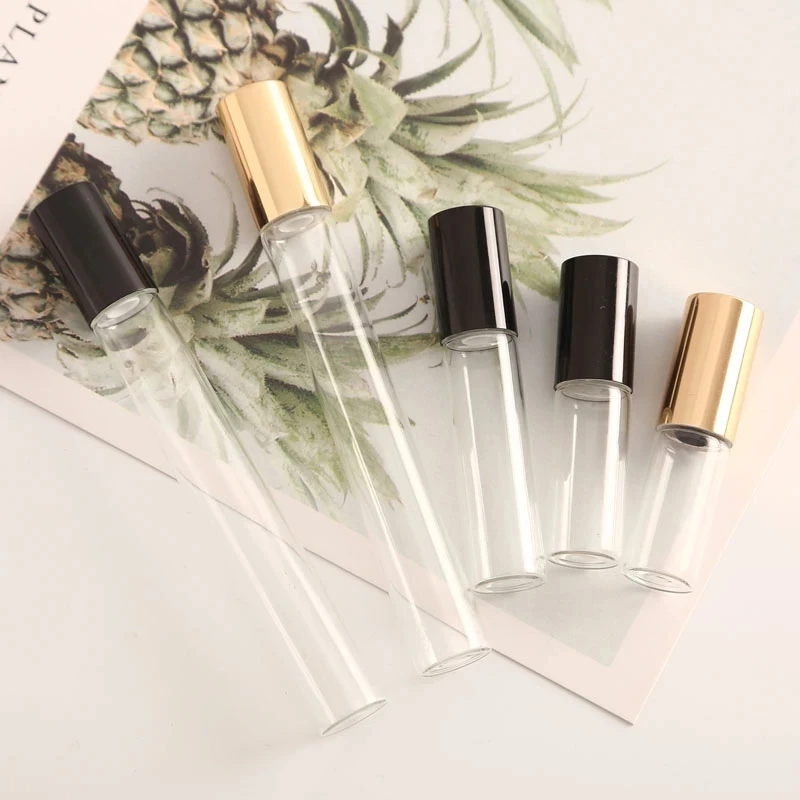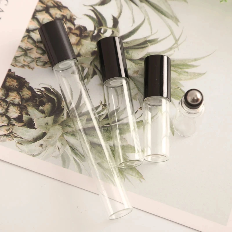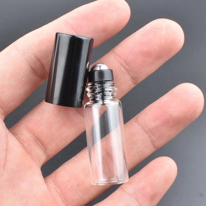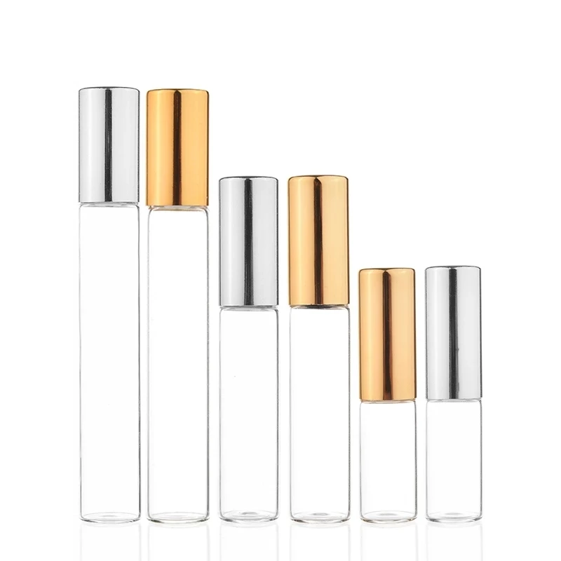 50 шт.лот 1 мл 2 мл 3 мл 5 мл 10 мл флакон для духов из стекла с металлическим шариком тонкие коричневые роликовые флаконы для эфирного масла