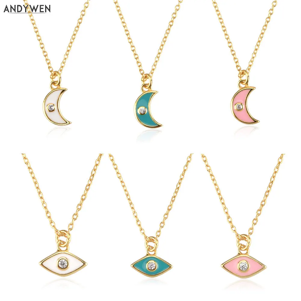 Цепочка-чокер ANDYWEN из серебра 925 пробы с подвеской в виде Золотой Луны и глаза