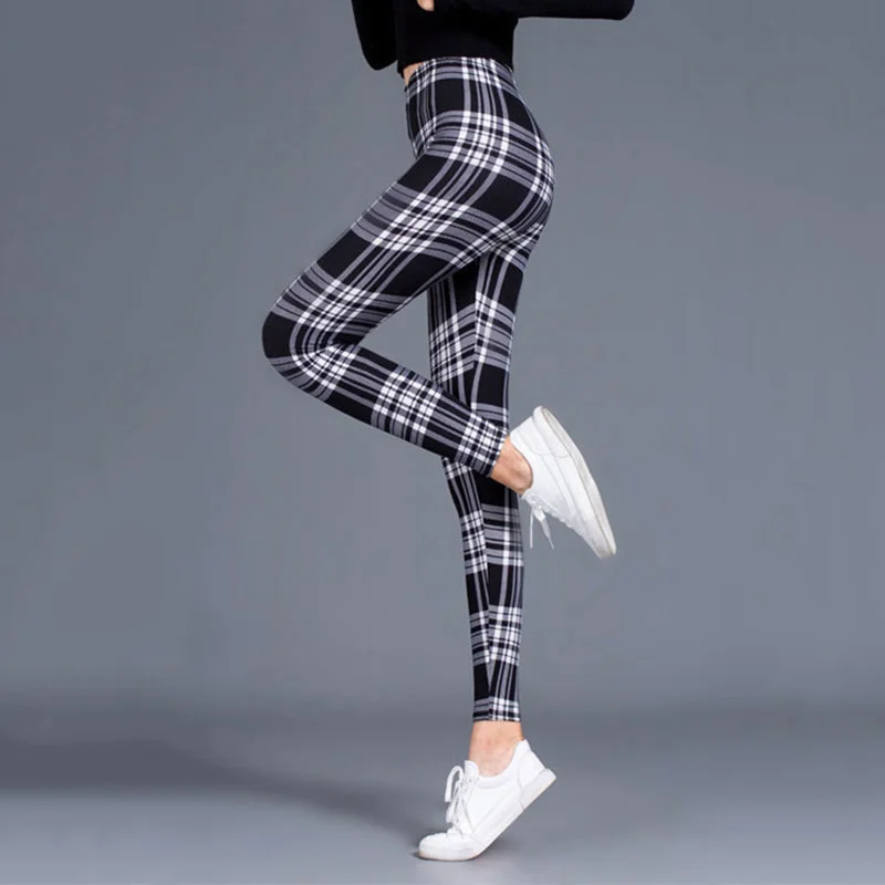 Леггинсы женские клетчатые с эффектом пуш-ап и высокой талией