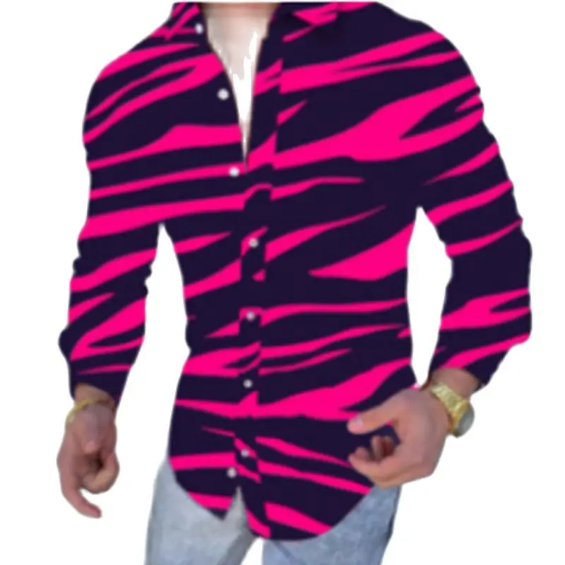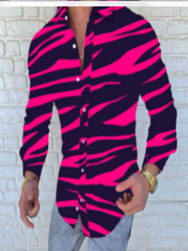 Мужская Повседневная рубашка с длинным рукавом, модная однобортная вечерние ничная куртка с отложным воротником и принтом в полоску, весна-осень