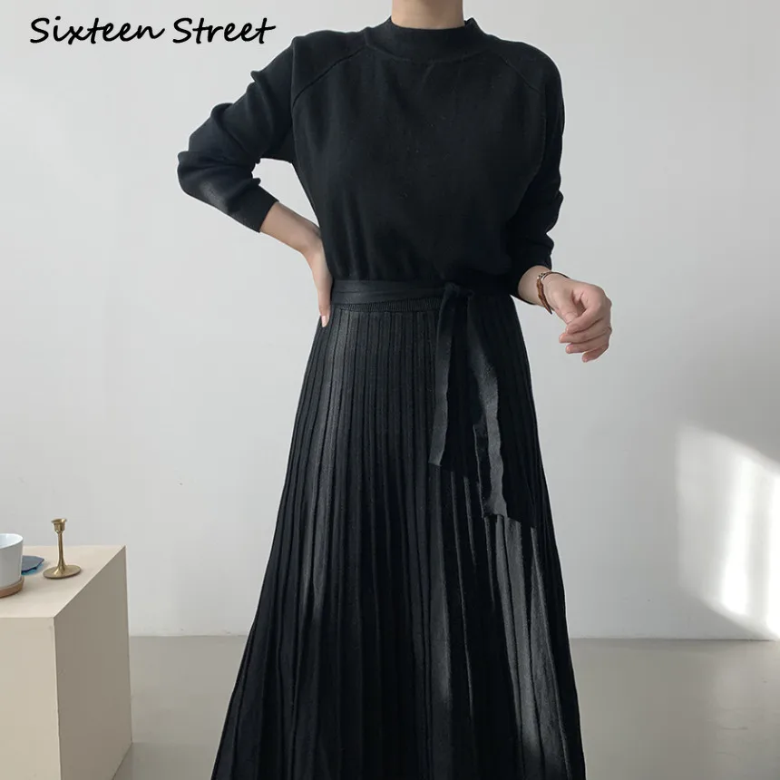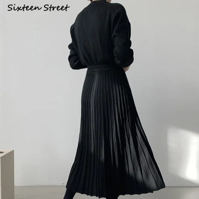 Женское шерстяное платье макси, вязаный свитер с длинным рукавом, Y2k, винтажная осенняя одежда в Корейском стиле