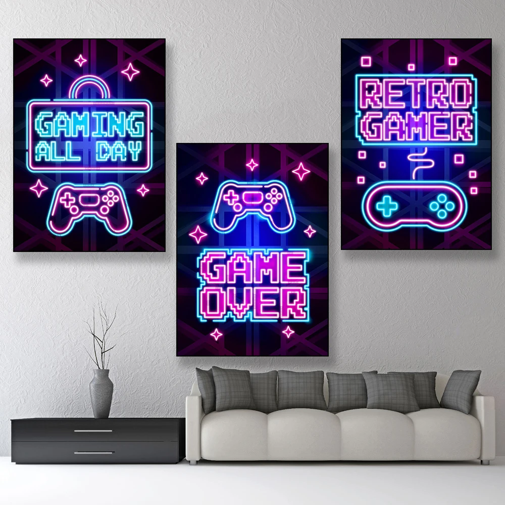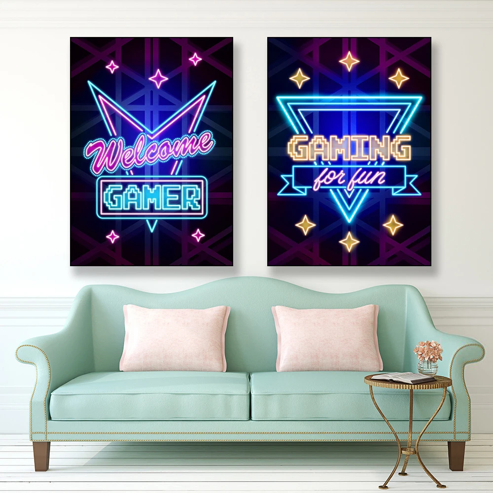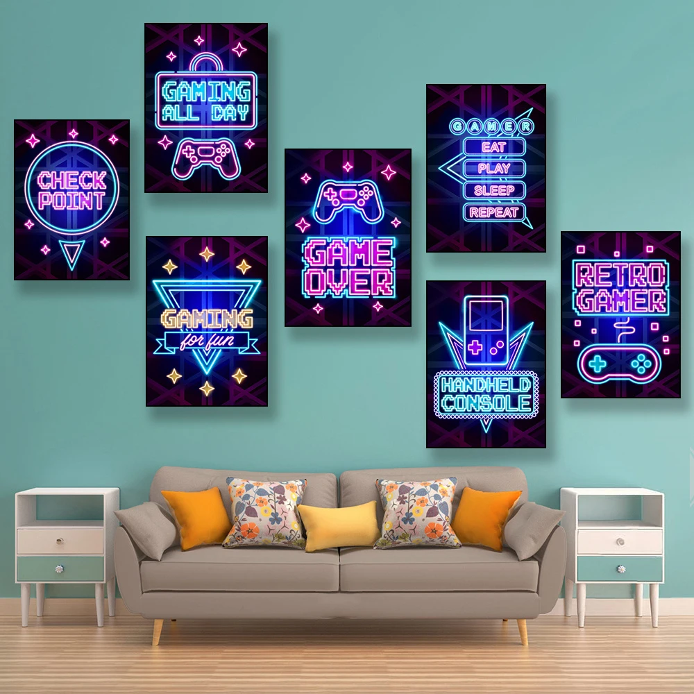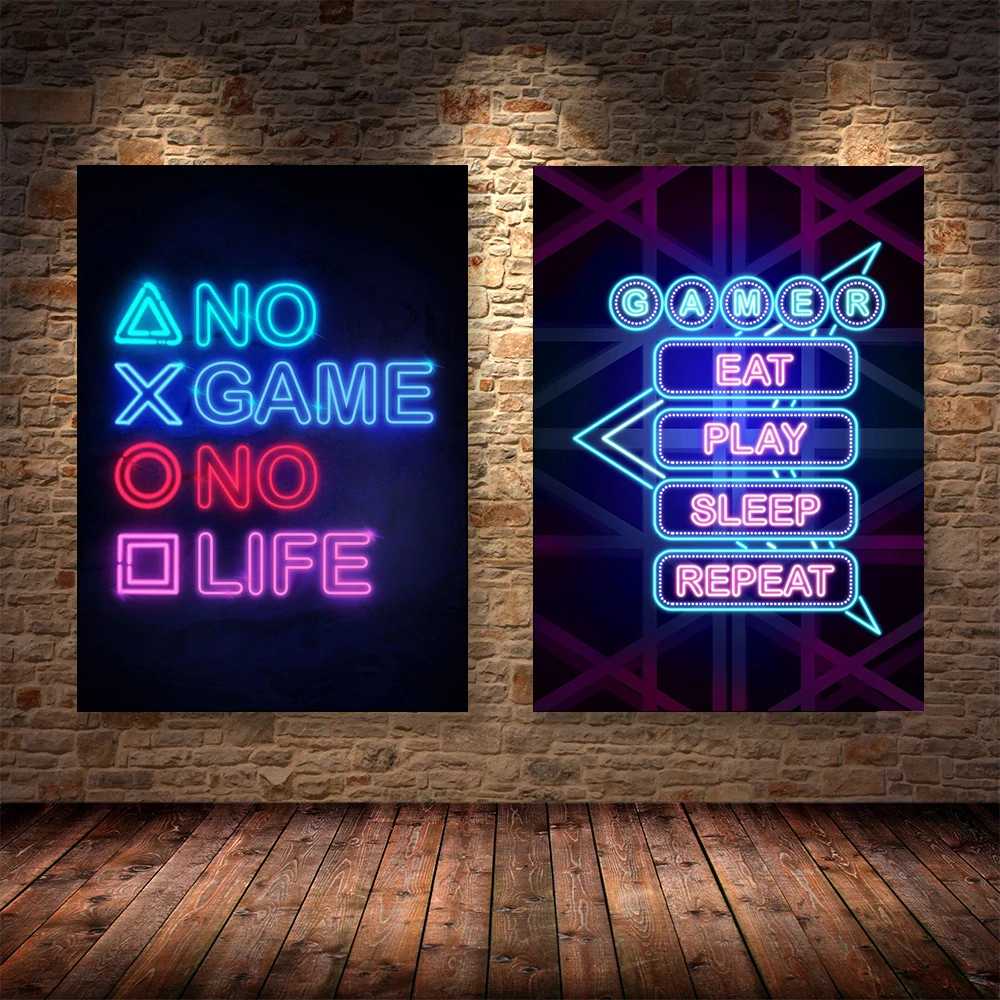 Настенные постеры, современные Неоновые Красочные принты Eat Game Sleep для гостиной, игровой комнаты, гостиной, кафе, домашний Декор, живопись на холсте