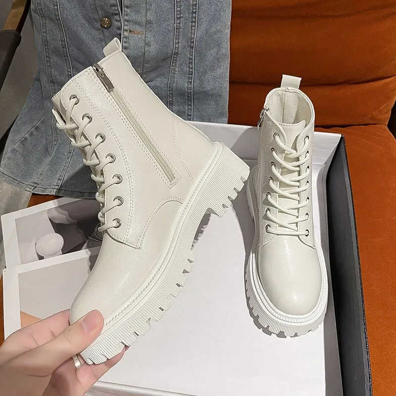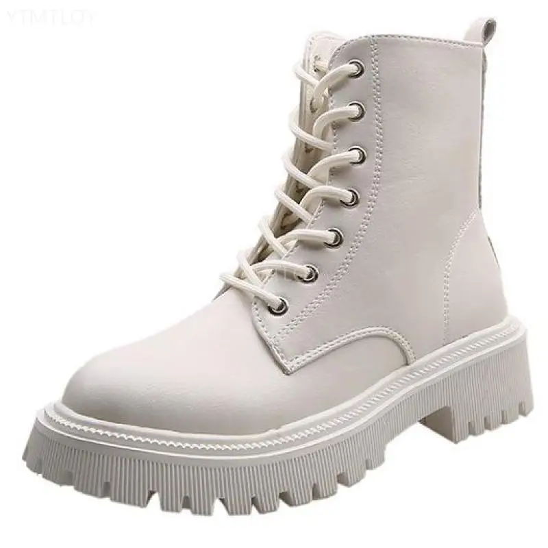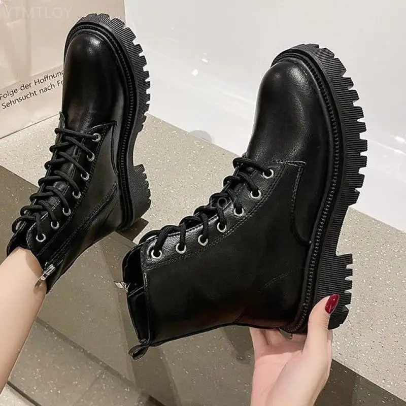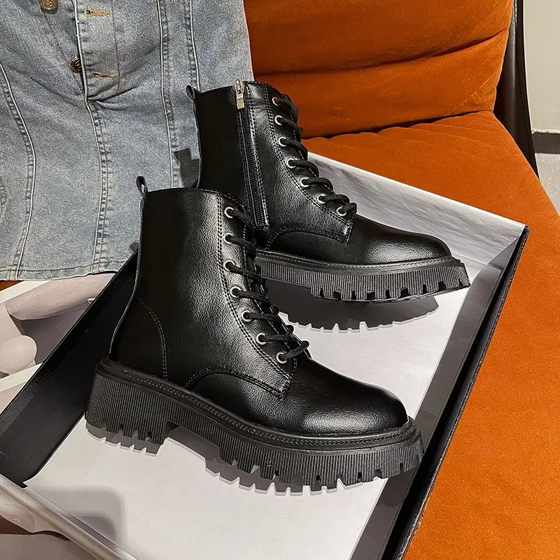 Женские ботинки из ПУ кожи, на шнуровке, с круглым носком