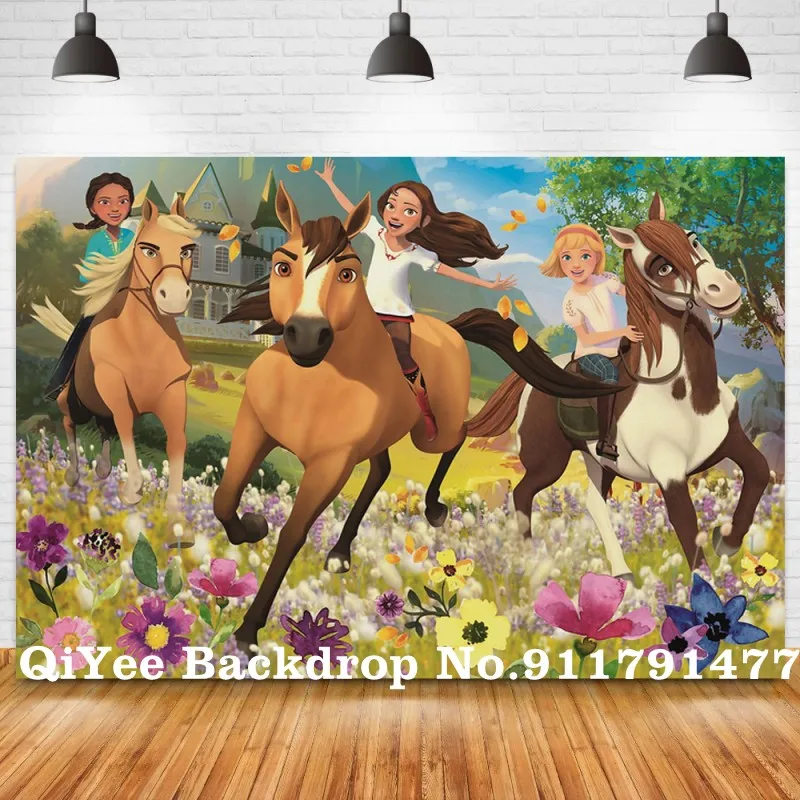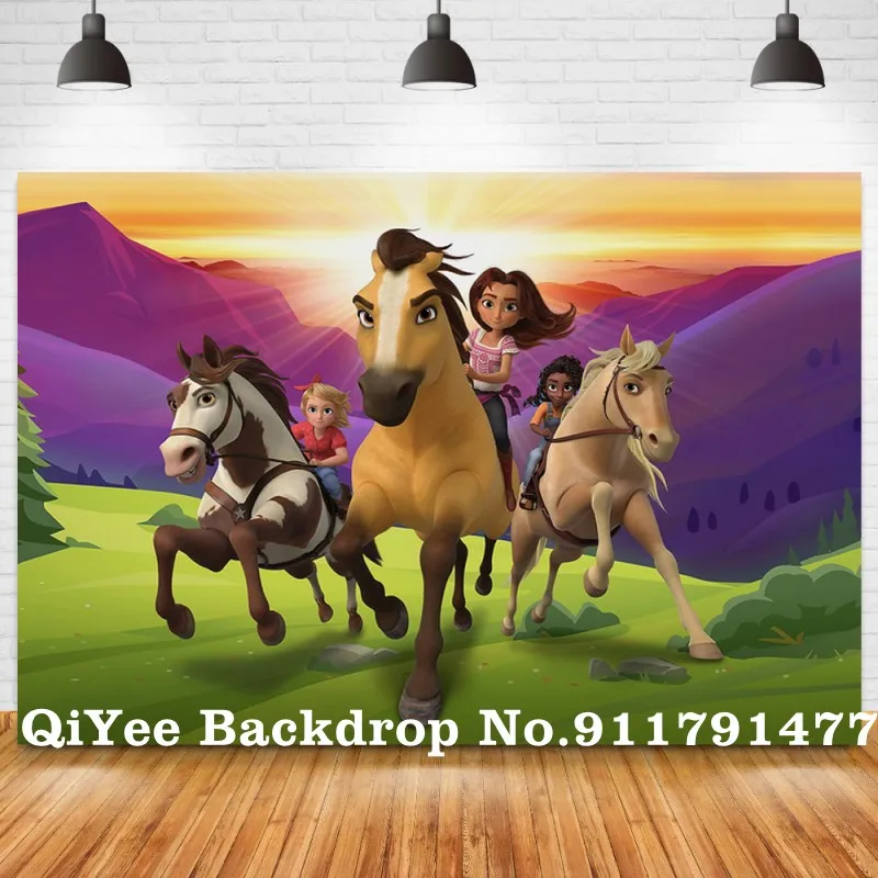Тематический фон для фотосъемки с изображением духа лошади луга вечерние Тии для езды мальчиков или девочек детей день рождения Обеденный стол Декорации для студийной видеосъемки