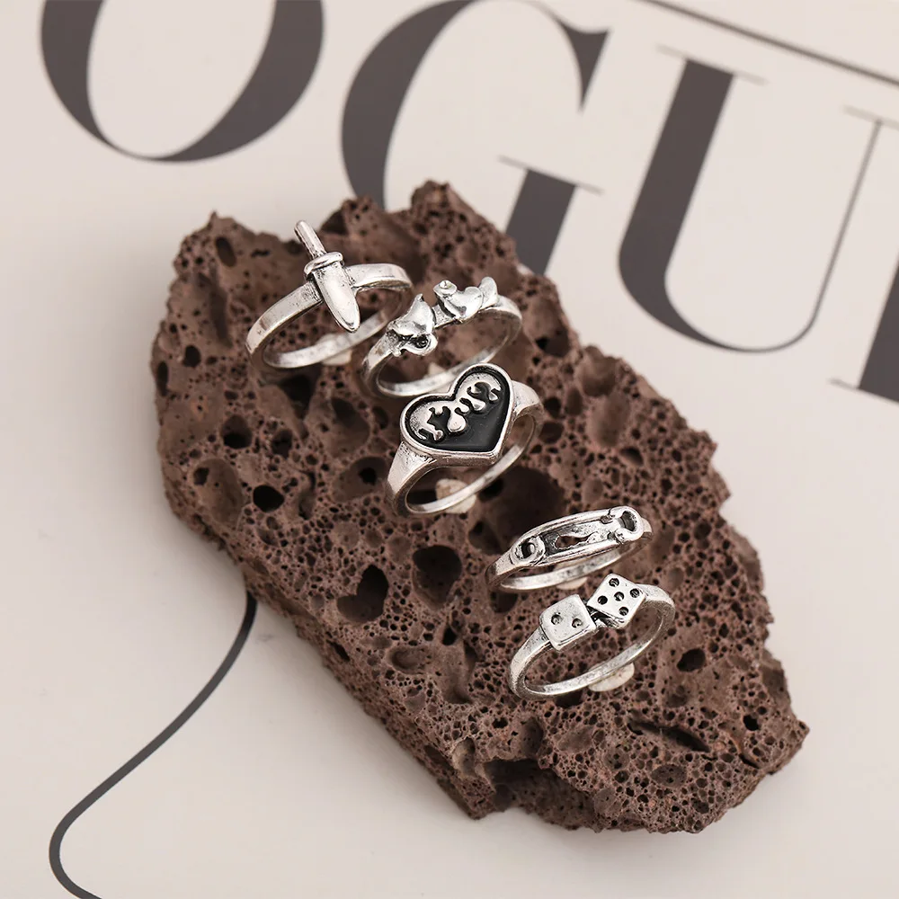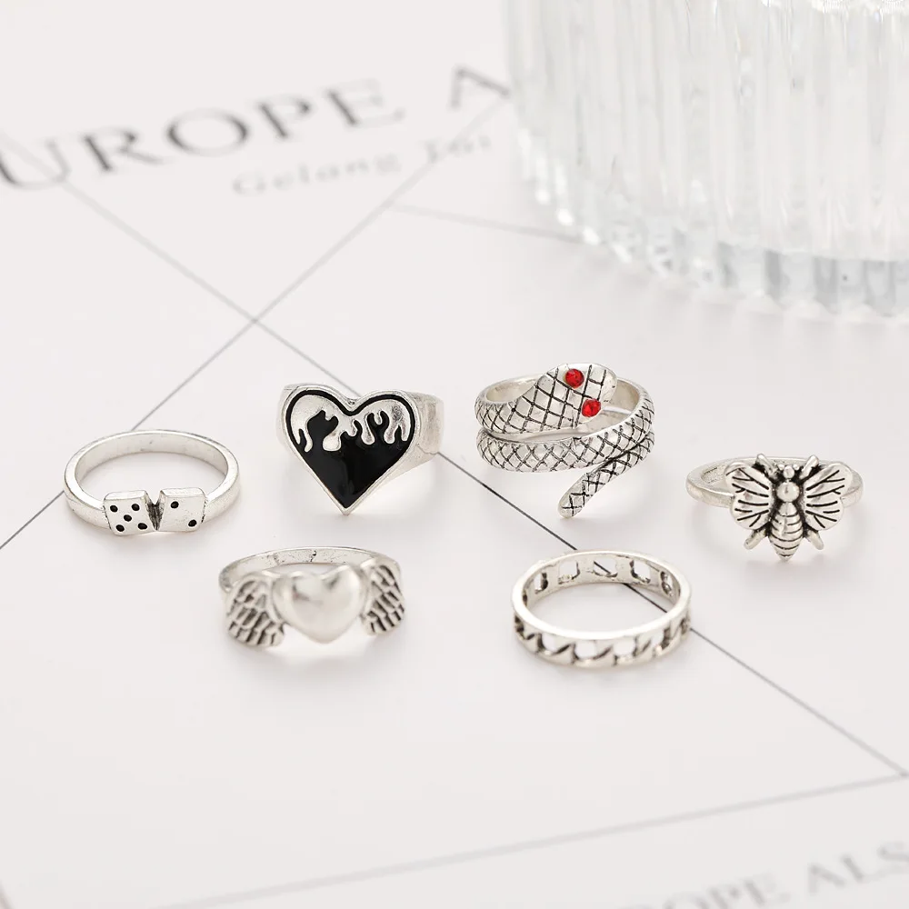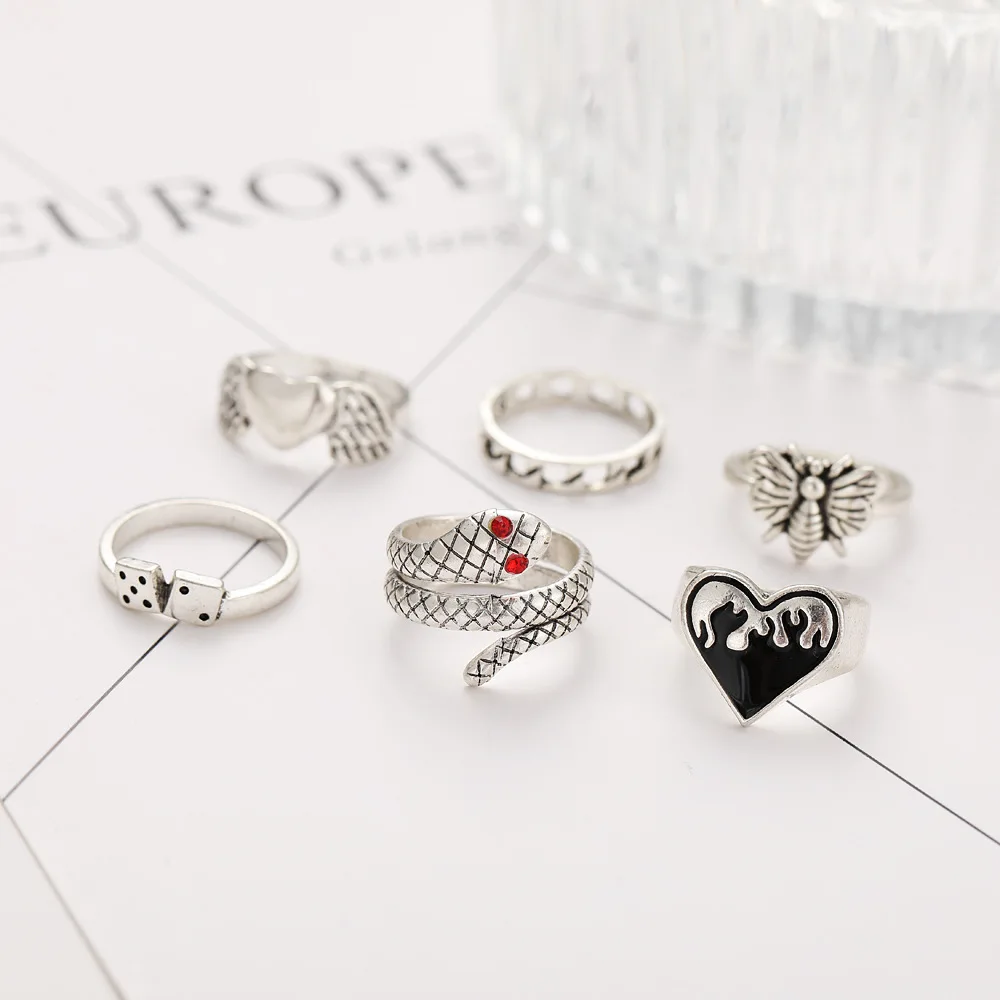 6 шт.компл. винтажный набор металлических колец для женщин и мужчин...