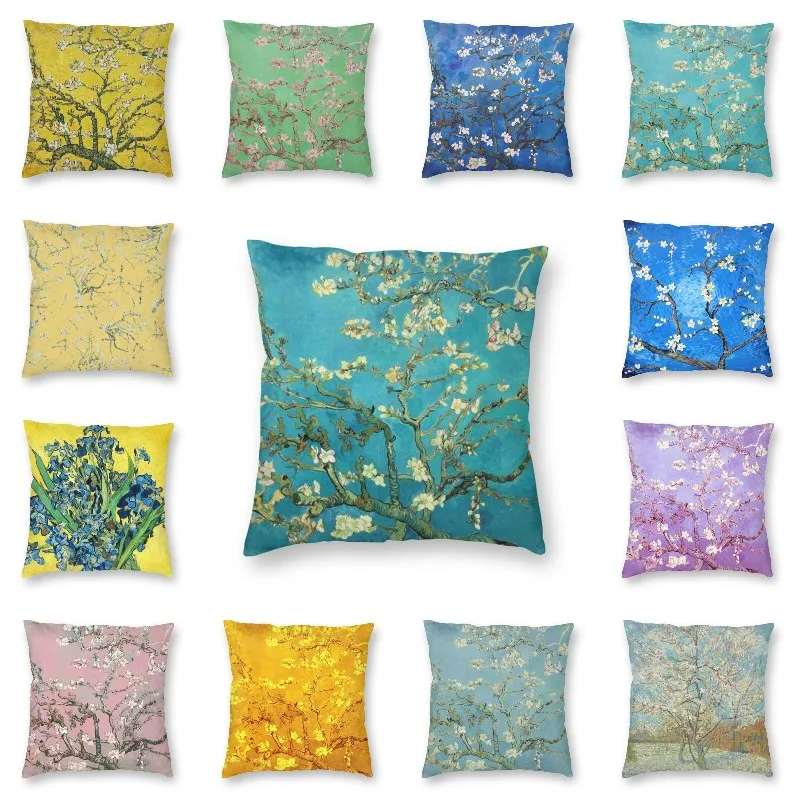 Наволочки для подушек с изображением цветов миндаля Винсента Ван Гога, милые бархатные декоративные подушки для салона