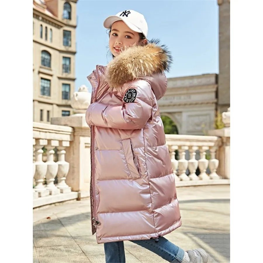 Коллекция 2021 года, модная одежда для девочек пуховик теплое Детское пальто, Парка утепленная верхняя одежда с большим мехом для детей-подростков зимняя одежда Зимний комбинезон