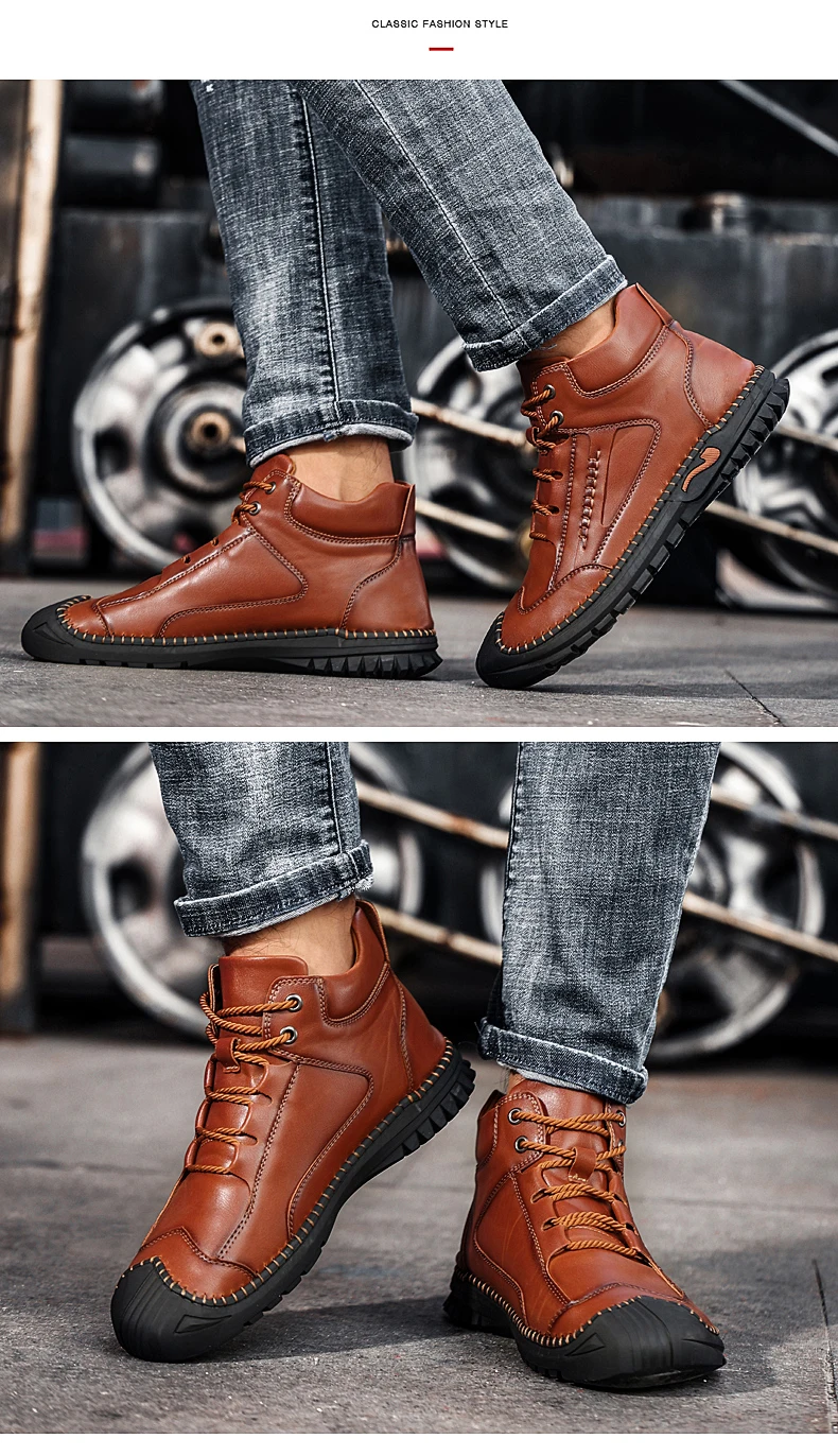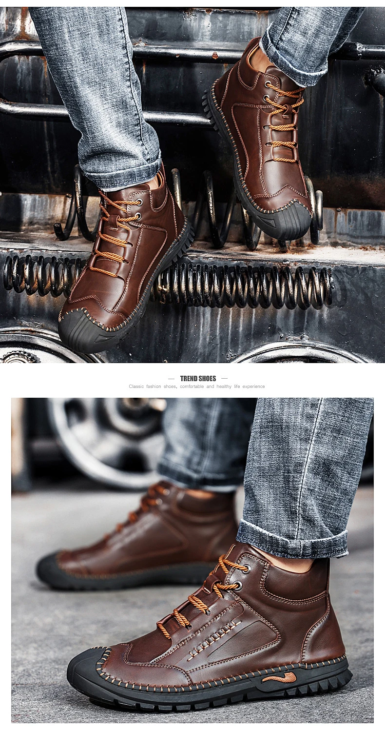 Классические зимние мужские ботинки из натуральной кожи с плюшевой подкладкой, теплые мужские ботинки для снега, водонепроницаемые уличные мужские рабочие ботинки в римском стиле, мужские мотоциклетные ботинки