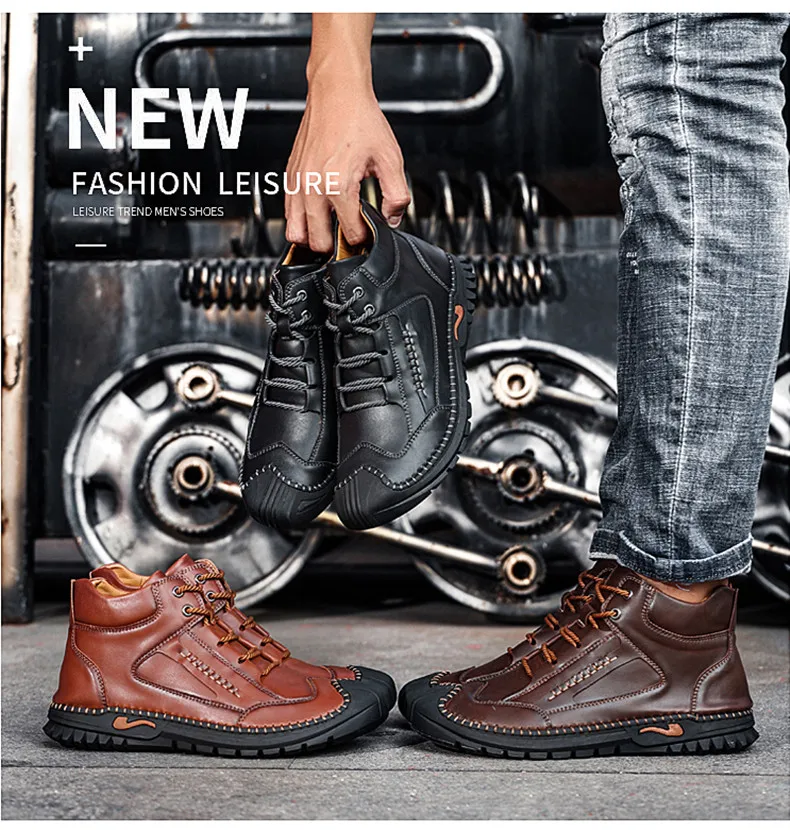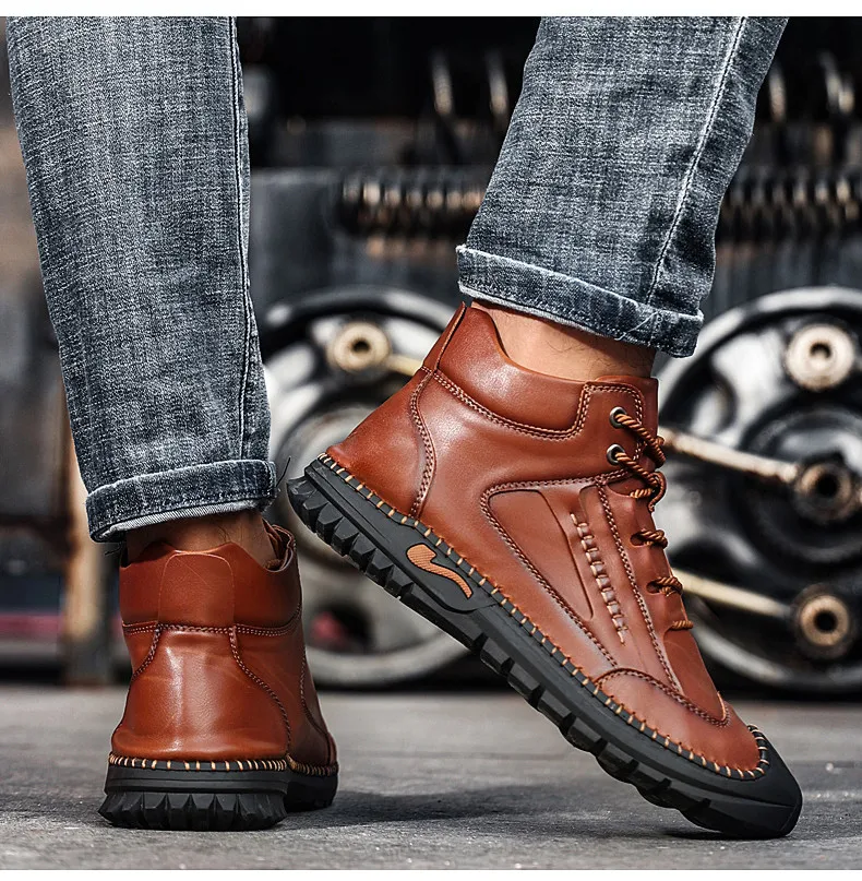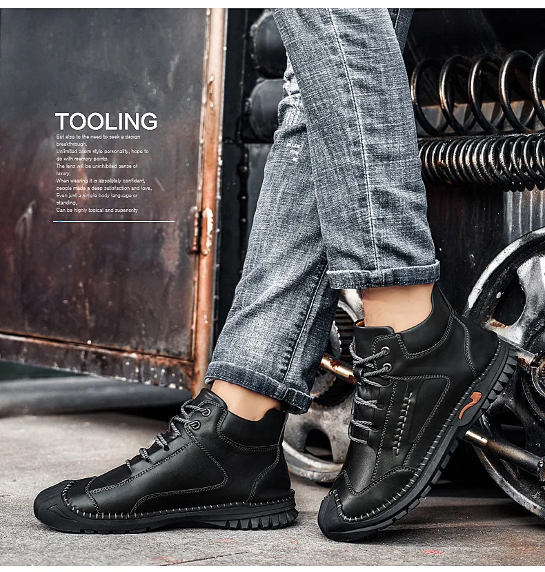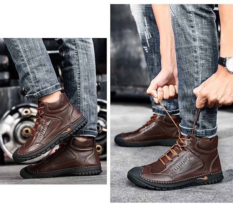 Мужские зимние ботинки с ручной строчкой кожаные ботильоны осенние ...