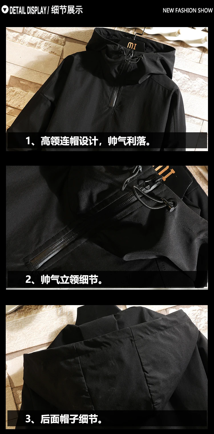 Мужская Осенняя однотонная куртка с капюшоном большого размера, Пов...