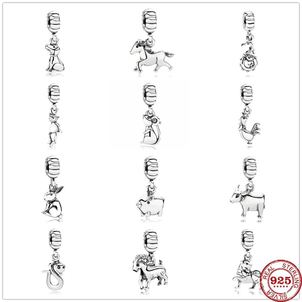 Новые модели серебряных животных, собак, лошадей, коров, свиней, кроликов. .. Шарм-бусина подходит для оригинального браслета Pandora DIY ювелирные изделия для женщин
