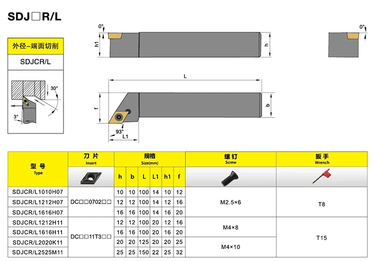 Внешний токарный держатель, совместимый с DCGT070202 DCGT070204, Алюминиевая Вставка, токарный инструмент, SDJCR1010H07, SDJCR1212H07, SDJCR1616H07