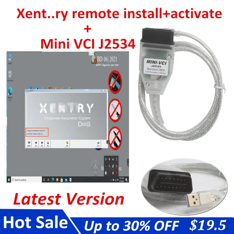 Новейшее программное обеспечение Xentry 2021,06, удаленная установка и активация с MINI VCI J2534, инструмент для автоматического сканера, OBD OBD2, автомобильный диагностический кабель