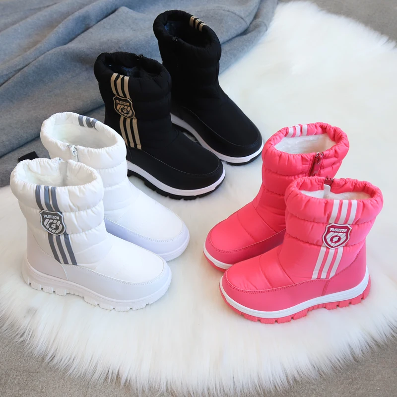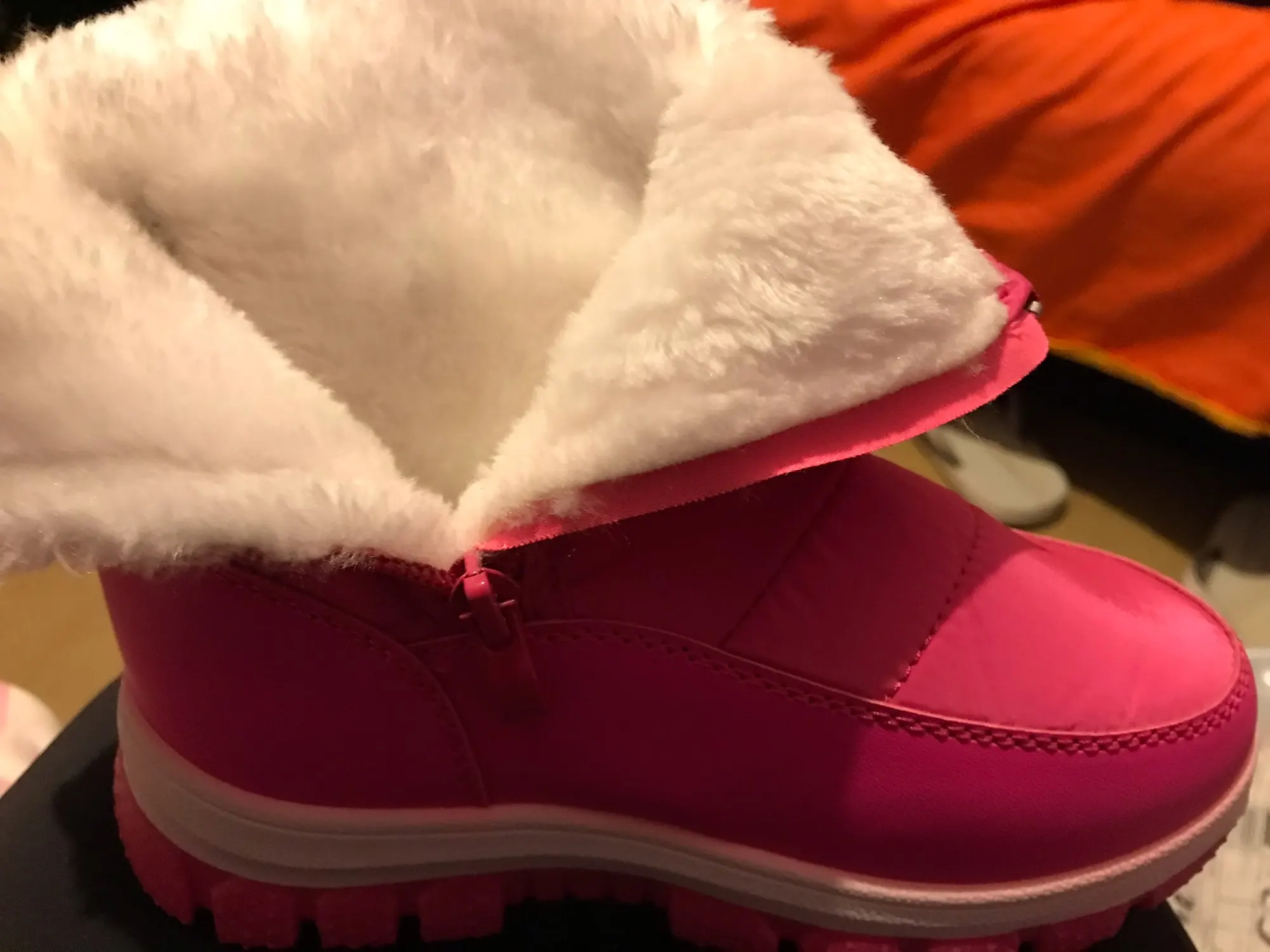 Детские ботинки на меху, черные, Нескользящие, водонепроницаемые, розовые