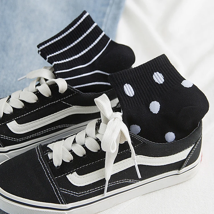 Модные полосатые носки с принтом love, милые дизайнерские женские кавайные хлопковые носки в стиле Харадзюку, женские белые черные носки