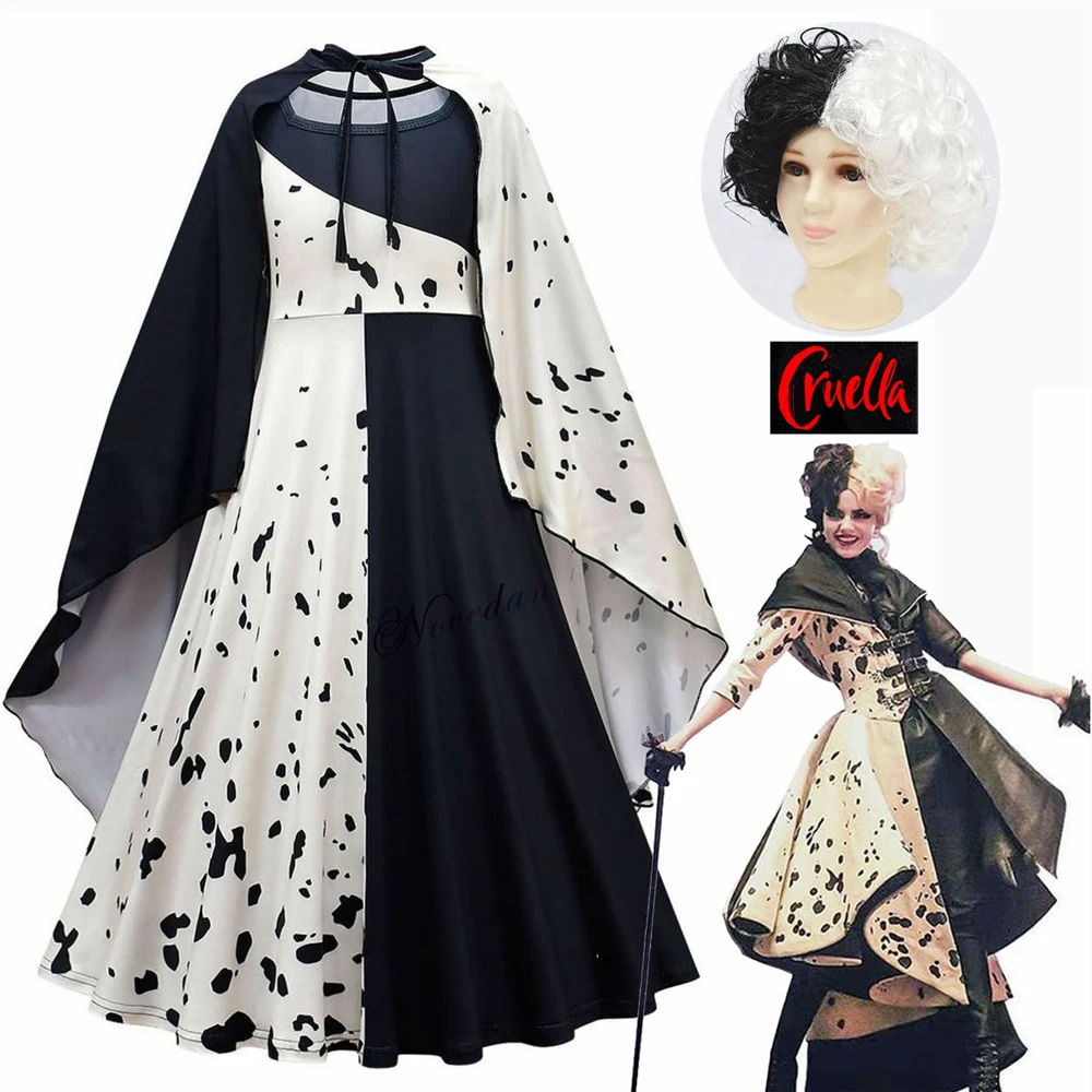 2021 Хэллоуин Мода фильм зла мадам Круэлла де Виль косплей костюм д...