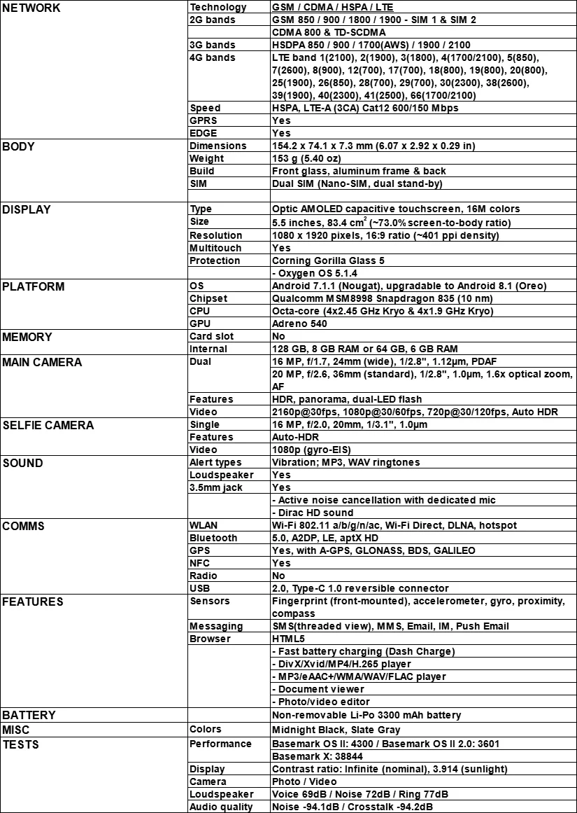 Oneplus 5 A5000 смартфон с 5,5-дюймовым дисплеем, ОЗУ 8 Гб, ПЗУ 128 ГБ, 1080x1920 пикселей, Android