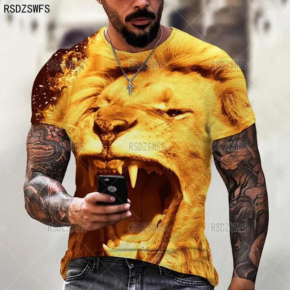 Футболка мужская оверсайз с круглым вырезом, модная тенниска с 3D-принтом льва, Стильная майка с коротким рукавом, уличная одежда в стиле Харадзюку, лето