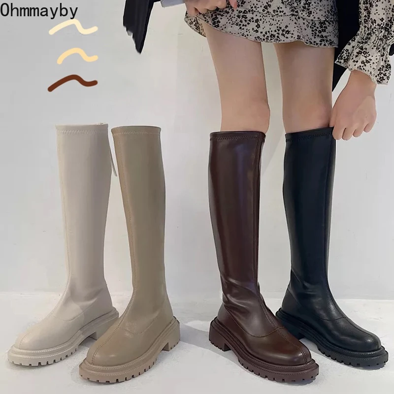 Облегающие сапоги до бедра, женские сапоги до колена на платформе и толстой подошве, женская обувь, черные зимние длинные мотоциклетные сапоги для женщин