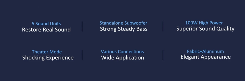 5 звуковых блоков, 100 Вт Мощный сильный бас, режим кинотеатра