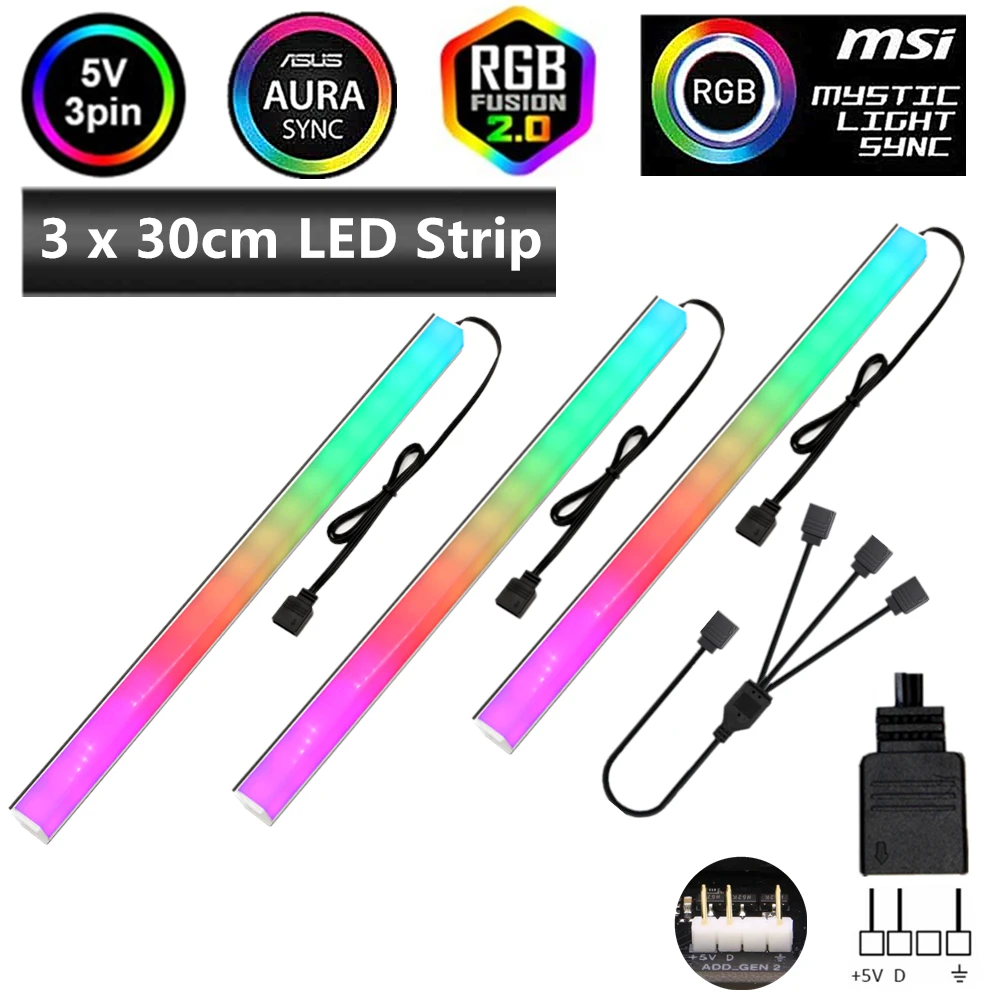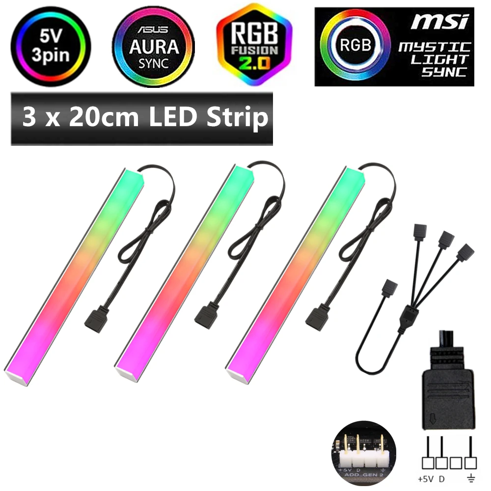Адресуемая 5 в 3-контактная алюминиевая RGB светильник ная лента для ПК Шасси с магнитной разноцветной атмосферной лампой для ASUS Aura SYNC