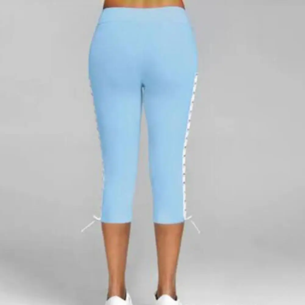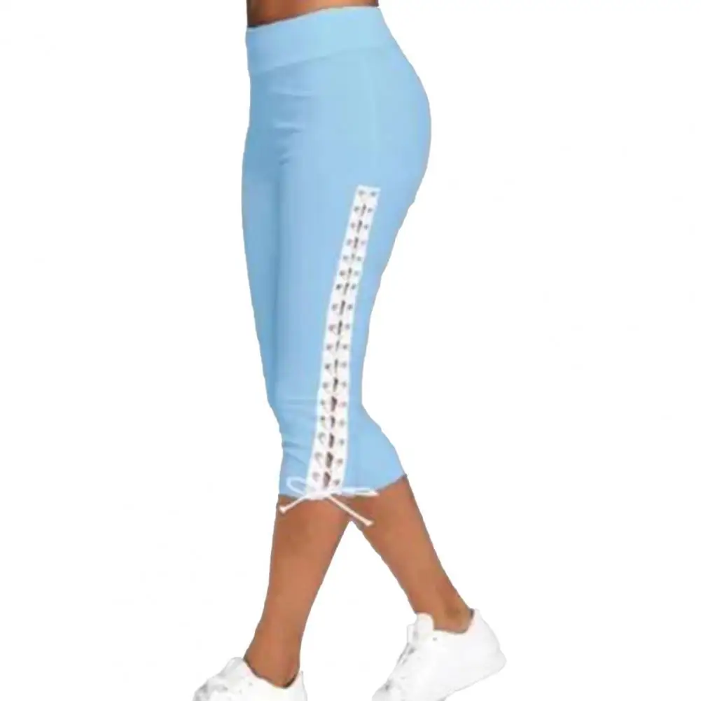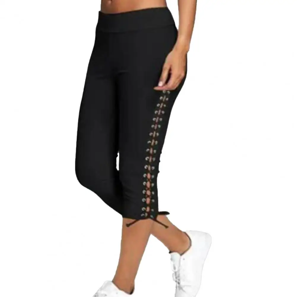 Женские штаны для йоги с боковой шнуровкой и вырезами, облегающие Женские Спортивные Капри с высокой талией для фитнеса, женские брюки-Капри