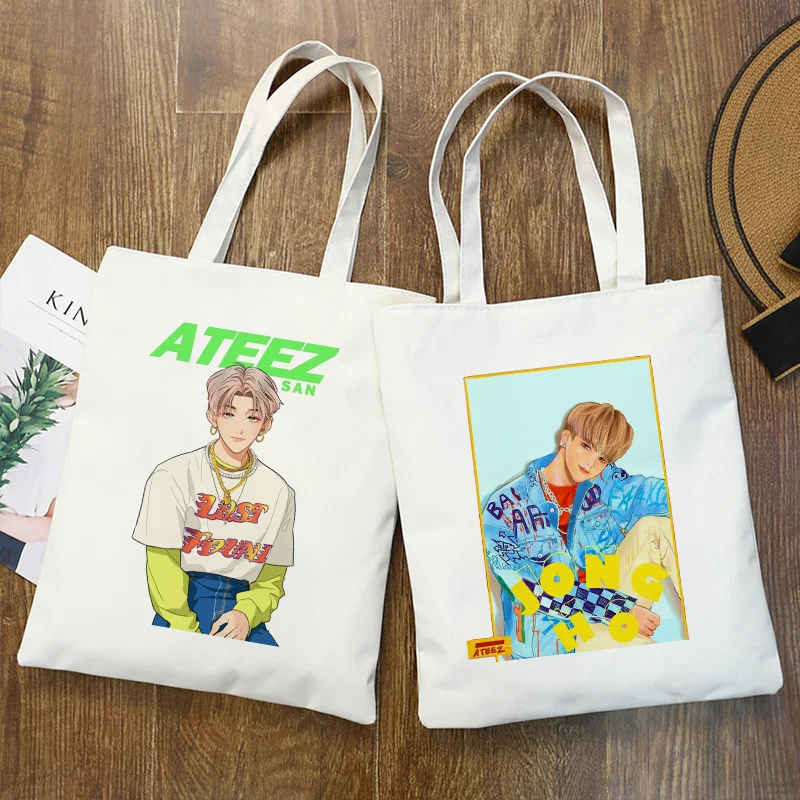Корейская сумка-шоппер Ulzzang, ATEEZ Kpop, в Корейском стиле, хипстерская сумка для покупок с мультипликационным принтом, Холщовая Сумка-тоут, ручная сумка