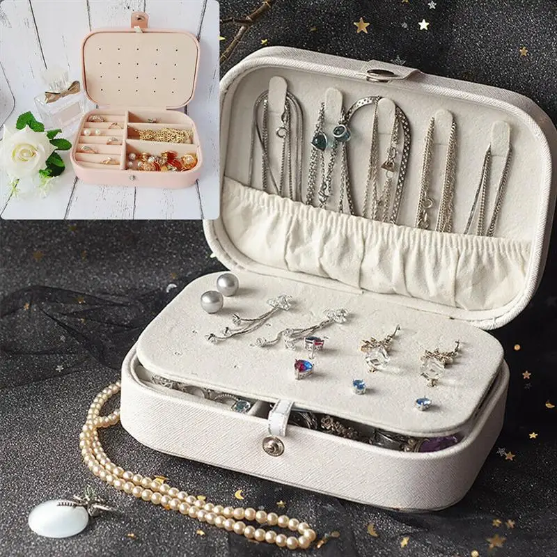 Портативный простой ящик для хранения ювелирных изделий, многофункциональный двухслойный контейнер для женщин, маленький Дорожный Чехол из искусственной кожи для ювелирных изделий