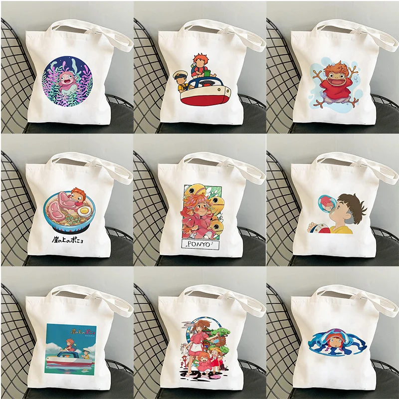 Сумки для покупок в стиле Харадзюку, аниме кавайная графическая дамская сумочка для покупок, тканевые холщовые тоуты, многоразовые женские сумки на ремне